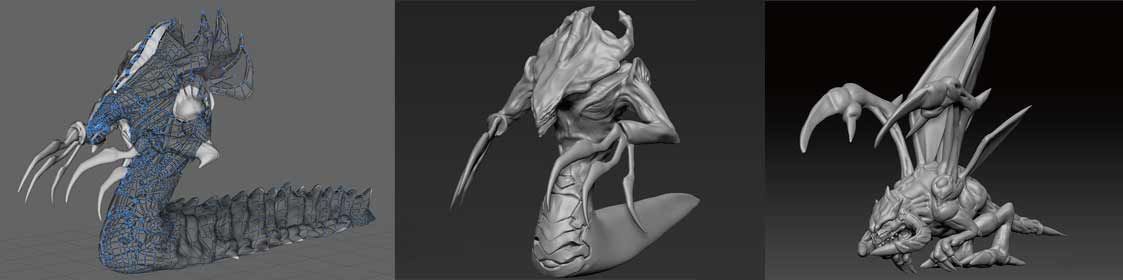 我们分成小组做人物模型及场景模型,人物包括了虫类,片子里不管是数量超多的小跳虫,还是出镜仅2秒的赤蛇,我们都很认真的分析参考,做出和原片更接近的模型。
