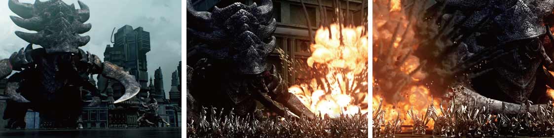 为了后期更好的合成我们向灯光渲染组讨论,将有爆炸和火花的镜头渲染出一个照明层,更有利后期的合成。